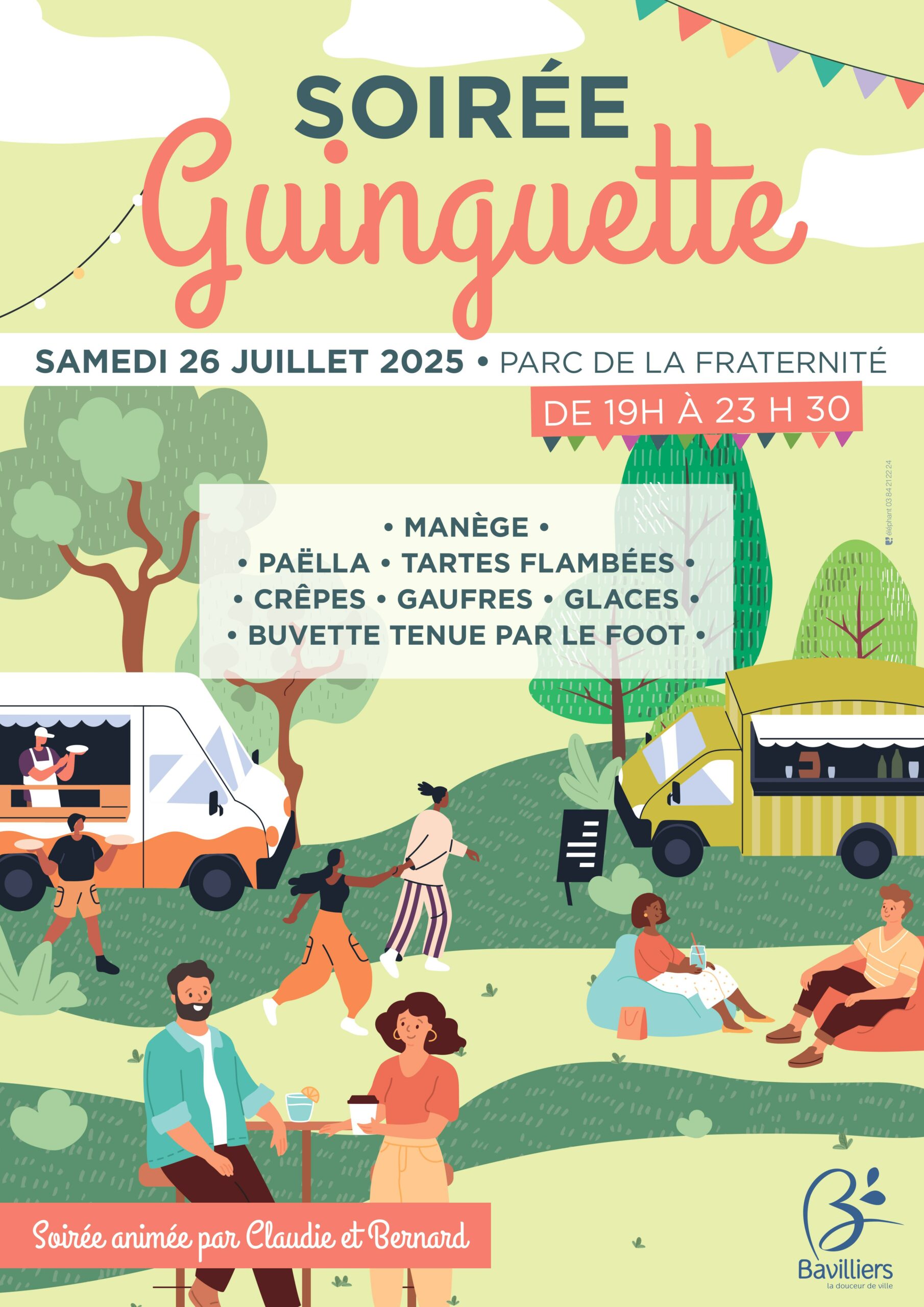 La Ville vous donne rendez-vous le samedi 26 juillet de 19h à 23h30 au parc de la Fraternité pour une soirée guinguette animée par Claudie et Bernard. Ambiance festive, manège, paëlla, tartes flambées, crêpes, glaces et buvette vous attendent !